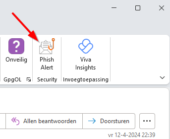 Het platform van de phishingsimulaties biedt een Outlook-knop voor eenvoudige melding van verdachte mails. Met deze knop wordt een directe terugkoppeling gegeven wanneer het bericht een onderdeel is van de phishingsimulatie. In het geval van een echte phishingmail, wordt het bericht direct verwijderd en doorgestuurd voor analyse. Zo wordt de behandeling van phishingberichten een natuurlijk onderdeel van het dagelijkse werk.