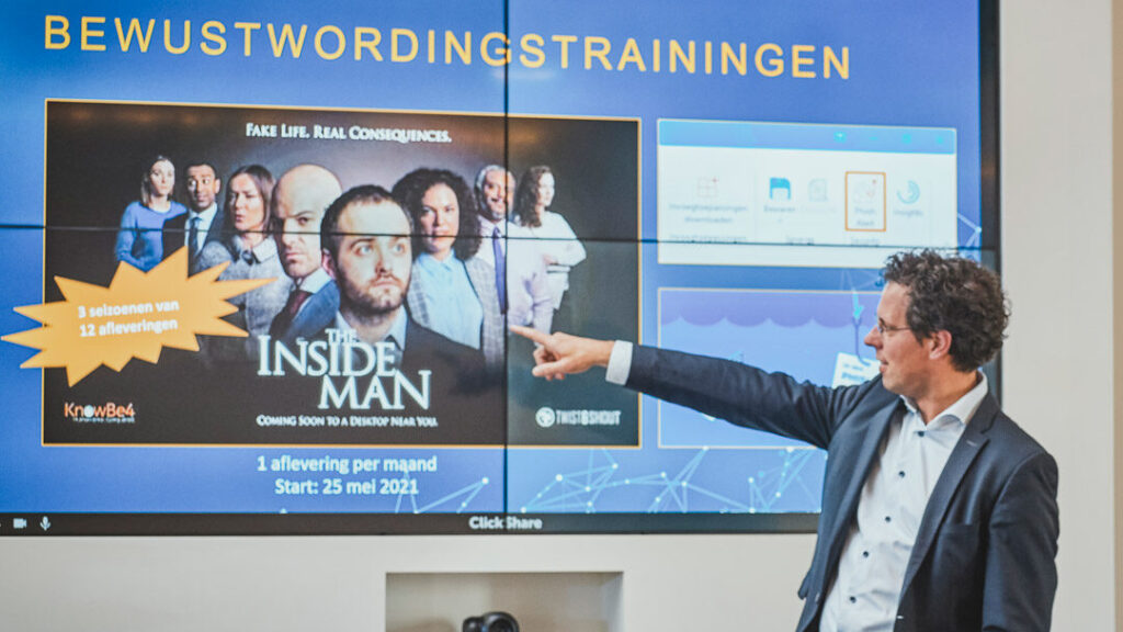 Uw medewerkers krijgen een bewustwordingstraining op locatie. Tijdens deze training informeren medewerkers over de belangrijkste zaken op het gebied van cyberveiligheid en wordt een positieve en prikkelende manier de resultaten gedeeld van de nulmeting.
