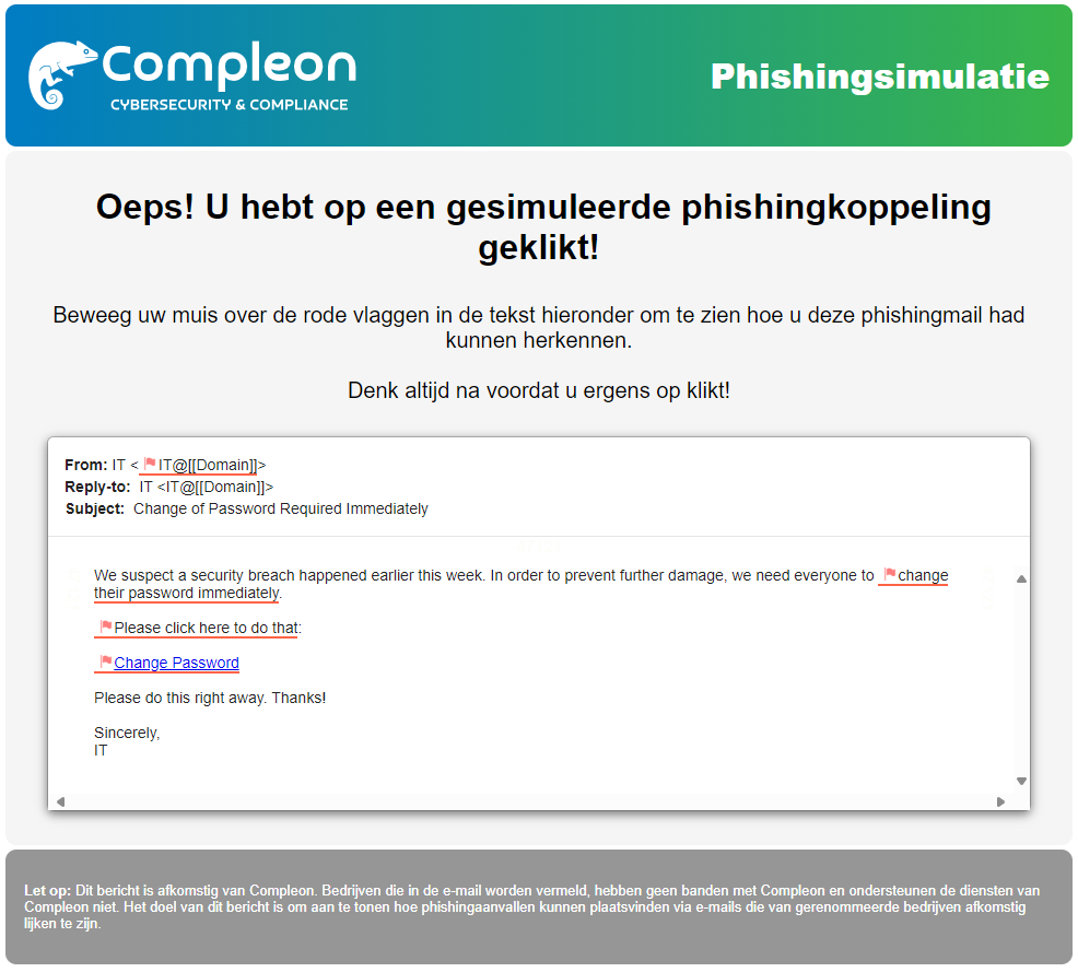 Eén keer per maand worden er phishingsimulaties uitgevoerd om uw medewerkers doorlopend te trainen in het herkennen van phishingmailtjes.